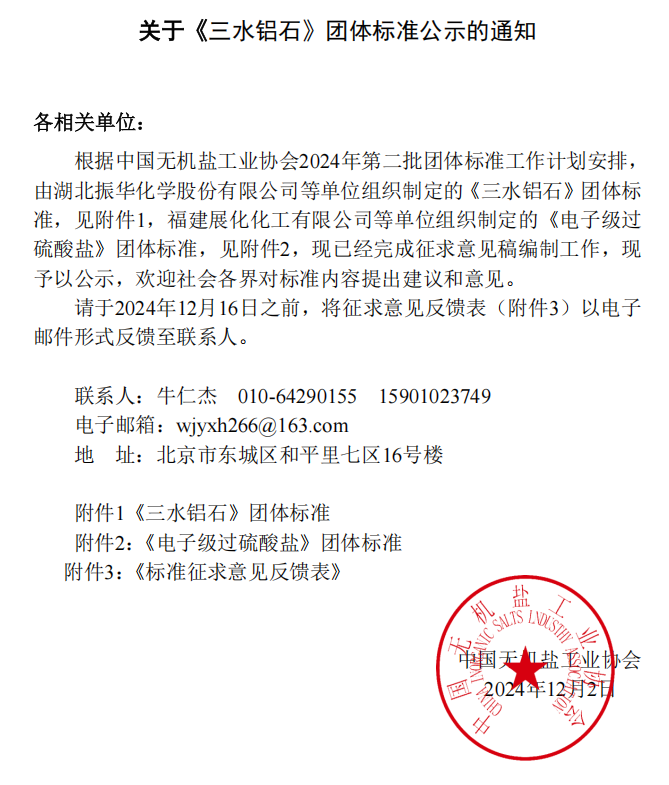 关于《热媒体(熔盐)用颗粒硝酸钾》等团体标准公示的通知